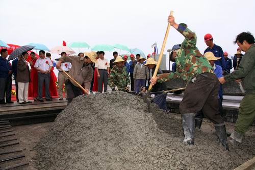 由公司承建的金昌機場停機坪工程按4C標(biāo)準設(shè)計,站坪機位4個(2B2C),總面積2.65萬平方米,可供波音737和空客320等機型的起降。該項工程自2009年10月進場,公司金昌機場項目部全體人員在高溫酷暑、大風(fēng)揚沙等惡劣氣候條件下,克服種種困難,通過改進施工工藝、調(diào)整作業(yè)時間等措施,順利完成了基礎(chǔ)施工。項目部僅用了25個晝夜就完成停機坪2.65萬平方米混凝土道面工程施工。