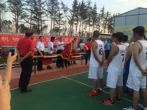 建設單位指揮部史副指揮長、工程部趙部長、監(jiān)理中企建發(fā)公司隋總為獲得冠軍、亞軍、季軍的籃球隊頒獎