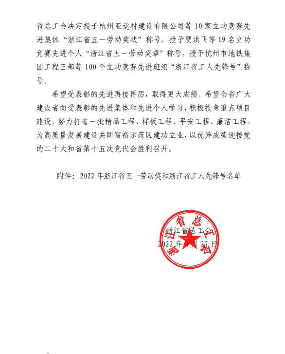 4月27日,我司新建浙江麗水機(jī)場(第一批)02 標(biāo)段項(xiàng)目部榮獲“浙江省工人先鋒號”稱號。