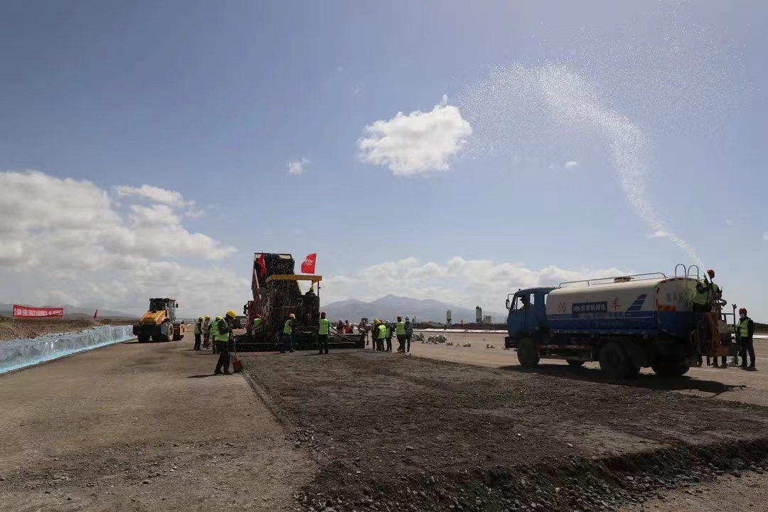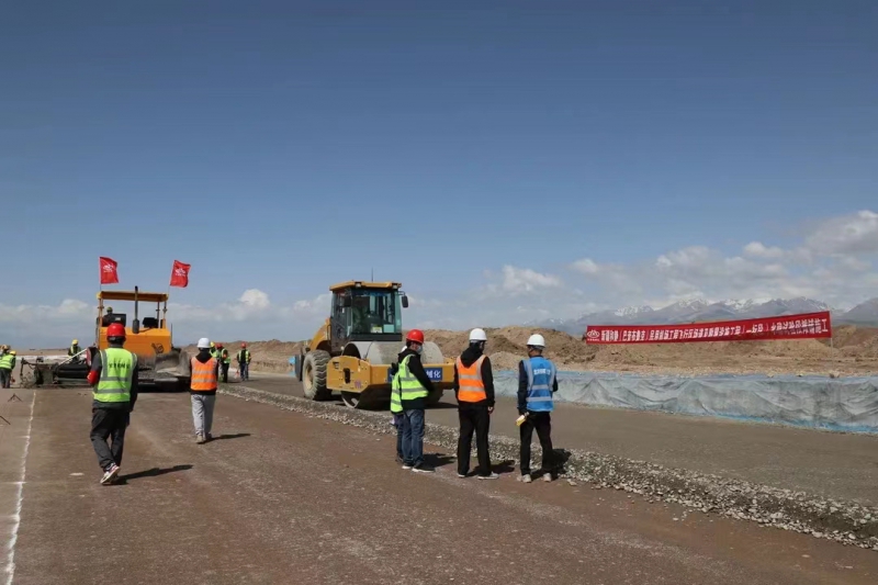 5月28日,伴隨著第一車水泥穩(wěn)定砂礫混合料緩緩倒入攤鋪機(jī)料斗,標(biāo)志著由我司承建的新疆和靜(巴音布魯克)機(jī)場(chǎng)飛行區(qū)跑道水穩(wěn)基層試驗(yàn)段施工正式拉開(kāi)序幕。