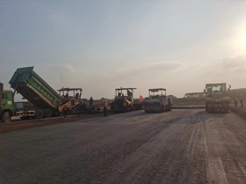11月28日,隨著第一車水泥穩(wěn)定砂礫混合料倒入攤鋪機(jī),攤鋪機(jī)緩緩啟動,標(biāo)志著由我司承建的南寧吳圩機(jī)場改擴(kuò)建工程飛行區(qū)場道工程(四標(biāo)段)水穩(wěn)基層試驗(yàn)段施工正式開始。