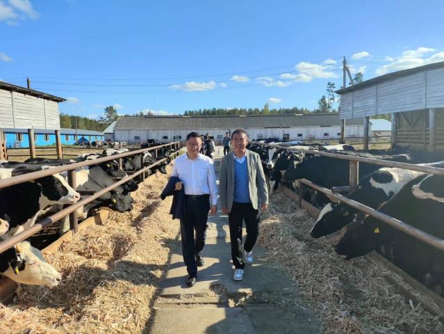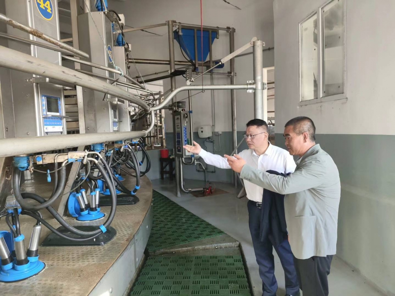 隨后羅世雄公使在候春暉場長的陪同下先后參觀了農(nóng)場牛舍、正在運行的烘干爐以及從國內(nèi)進口的50位轉盤式擠奶廳等設施設備。